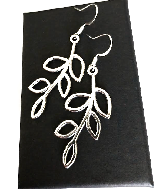 Introducing Anais.. Antique silver leaf earrings, suspended from silver plated nickel free ear wires, (suitable for sensitive ears).. Sterling silver ear wires are available, if preferred… see options. Lightweight, elegant and easy to wear, elevate your style with these beauties! The drop on these earrings is approx. 5cm/2ins. They arrive in a pretty organza bag, and.. have free shipping!